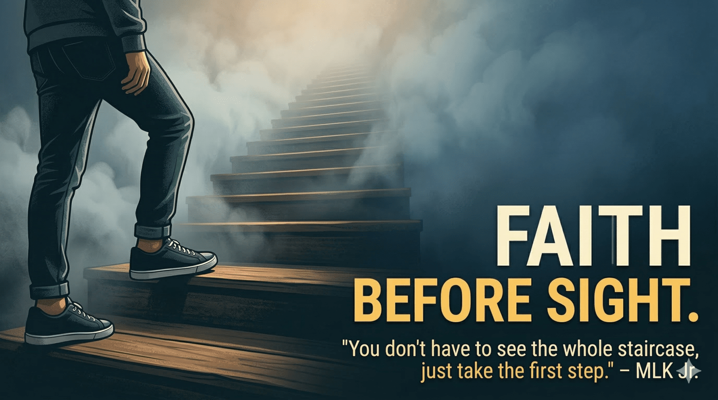 Maybe today God is asking you to take a step and you can’t see where it leads. That’s okay. He’s not asking you to see the whole staircase. He’s asking you to trust the One standing at the top of it.